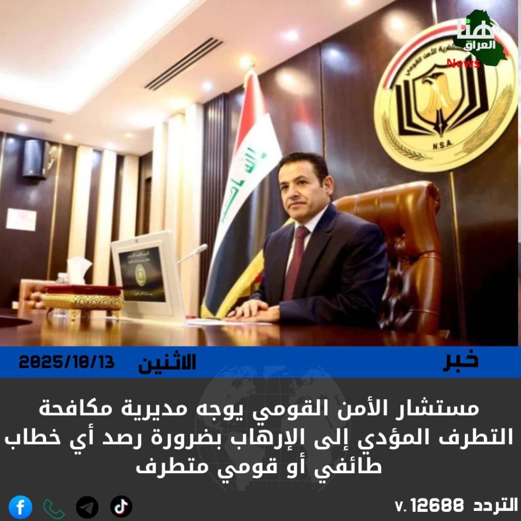 الرئيسية/امن/مستشار الأمن القومي يوجه مديرية مكافحة التطرف المؤدي إلى الإرهاب بضرورة رصد أي خطاب طائفي أو قومي متطرف امنسياسة مستشار الأمن القومي يوجه مديرية مكافحة التطرف المؤدي إلى الإرهاب بضرورة رصد أي خطاب طائفي أو قومي متطرف شاركها فيسبوك X لينكدإن Tumblr بينتيريست Reddit VKontakte Odnoklassniki Pocket مشاركة عبر البريد طباعة