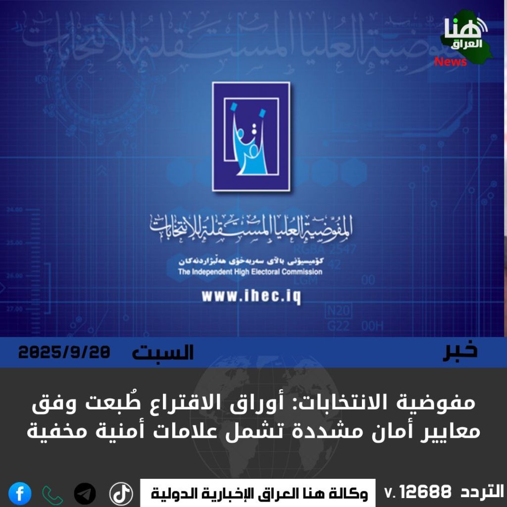 مفوضية الانتخابات: أوراق الاقتراع طُبعت وفق معايير أمان مشددة تشمل علامات أمنية مخفية
