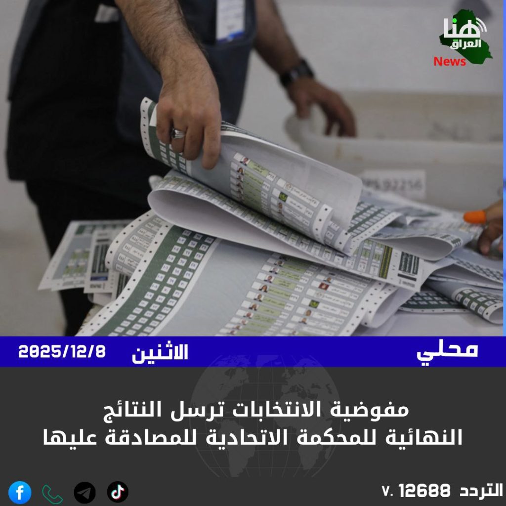 الرئيسية/سياسة/مفوضية الانتخابات ترسل النتائج النهائية للمحكمة الاتحادية للمصادقة عليها سياسةمحلي مفوضية الانتخابات ترسل النتائج النهائية للمحكمة الاتحادية للمصادقة عليها شاركها فيسبوك X لينكدإن Tumblr بينتيريست Reddit VKontakte Odnoklassniki Pocket مشاركة عبر البريد طباعة