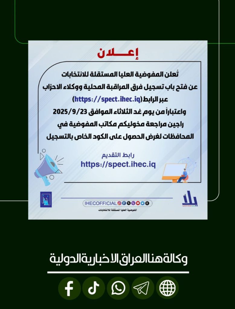 الرئيسية/محلي/مفوضية الانتخابات تنشر رابط تسجيل فرق المراقبة المحلية ووكلاء الأحزاب محلي مفوضية الانتخابات تنشر رابط تسجيل فرق المراقبة المحلية ووكلاء الأحزاب شاركها فيسبوك X لينكدإن Tumblr بينتيريست Reddit VKontakte Odnoklassniki Pocket مشاركة عبر البريد طباعة