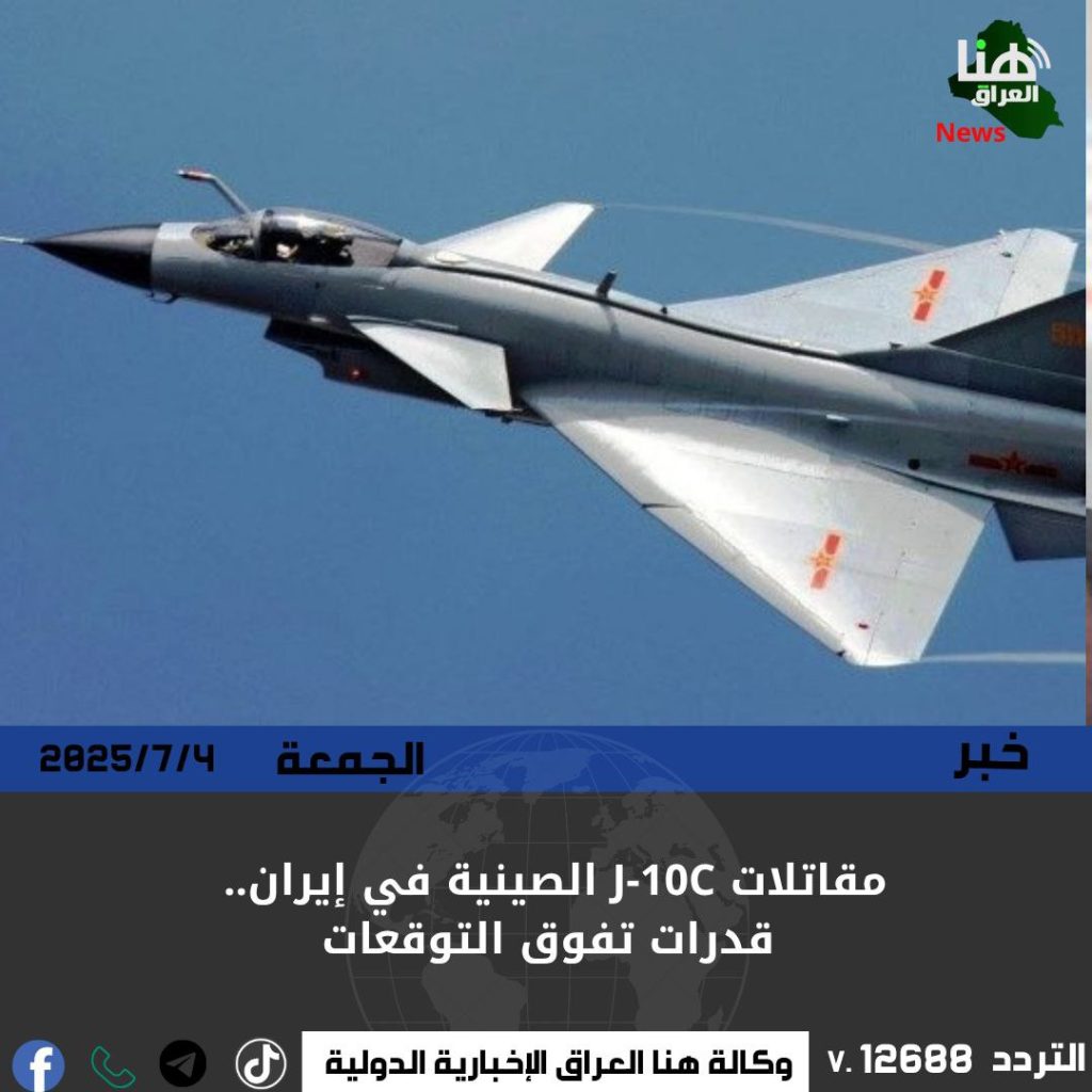 تسلّمت إيران دفعة من المقاتلات الصينية J-10C، وهي طائرات من الجيل 4.5 متعددة الأدوار، وتُعد من الأكثر تطوراً على مستوى العالم في فئتها.
