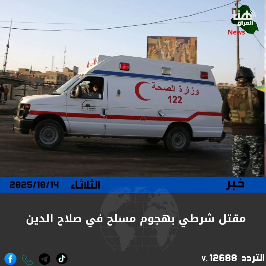 وقال مصدر أمني إن مسلحين يستقلون مركبة أطلقوا النار باتجاه الشرطي أثناء وجوده قرب السوق الرئيس في الناحية، ما أدى إلى مقتله في الحال.