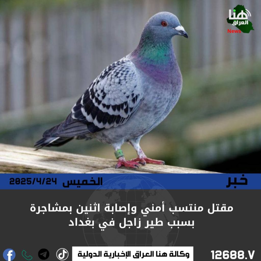 لقي منتسب أمني مصرعه، فيما أُصيب شخصان آخران، إثر مشاجرة نشبت بسبب “طير زاجل” في العاصمة بغداد. وأفاد مصدر أمني بأن الحادث تطور إلى استخدام السلاح، ما أسفر عن وقوع الضحايا، في وقت فتحت فيه السلطات تحقيقاً بالحادث لكشف ملابساته.