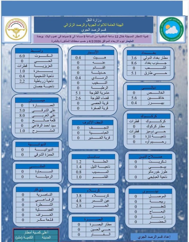 الرئيسية/الطقس/مناطق جنوب بغداد تسجل اعلى كمية امطار خلال الـ12 ساعة الماضية بمعدل 8,6 ملم الطقسمحلي مناطق جنوب بغداد تسجل اعلى كمية امطار خلال الـ12 ساعة الماضية بمعدل 8,6 ملم شاركها فيسبوك X لينكدإن Tumblr بينتيريست Reddit VKontakte Odnoklassniki Pocket مشاركة عبر البريد طباعة