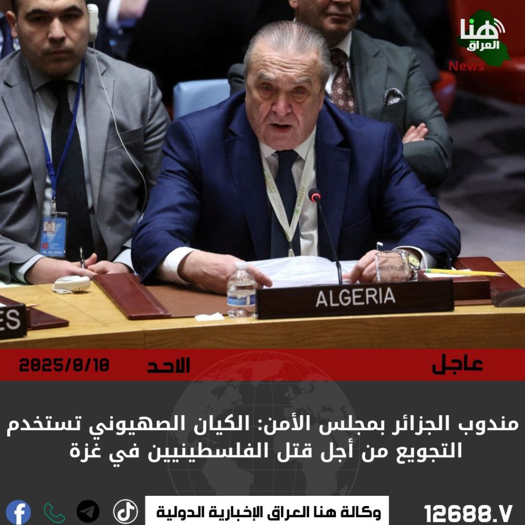 الرئيسية/دولي/مندوب الجزائر بمجلس الأمن: الكيان الصهيوني تستخدم التجويع من أجل قتل الفلسطينيين في غزة دوليسياسة مندوب الجزائر بمجلس الأمن: الكيان الصهيوني تستخدم التجويع من أجل قتل الفلسطينيين في غزة شاركها فيسبوك X لينكدإن Tumblr بينتيريست Reddit VKontakte Odnoklassniki Pocket مشاركة عبر البريد طباعة