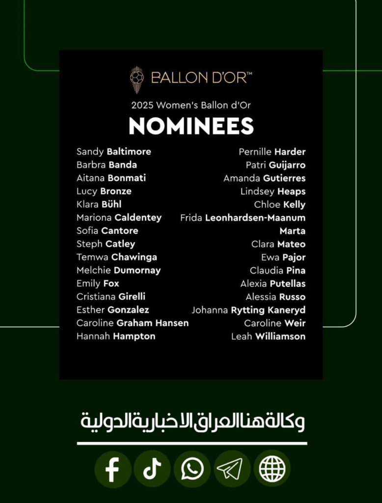 من ستحصد الكرة الذهبية النسائية 2025؟.. إليك القائمة الرسمية للمرشحات