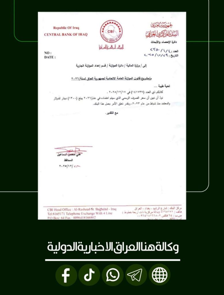موازنة 2026 تعتمد 1300 دينار سعرا رسميا للدولار