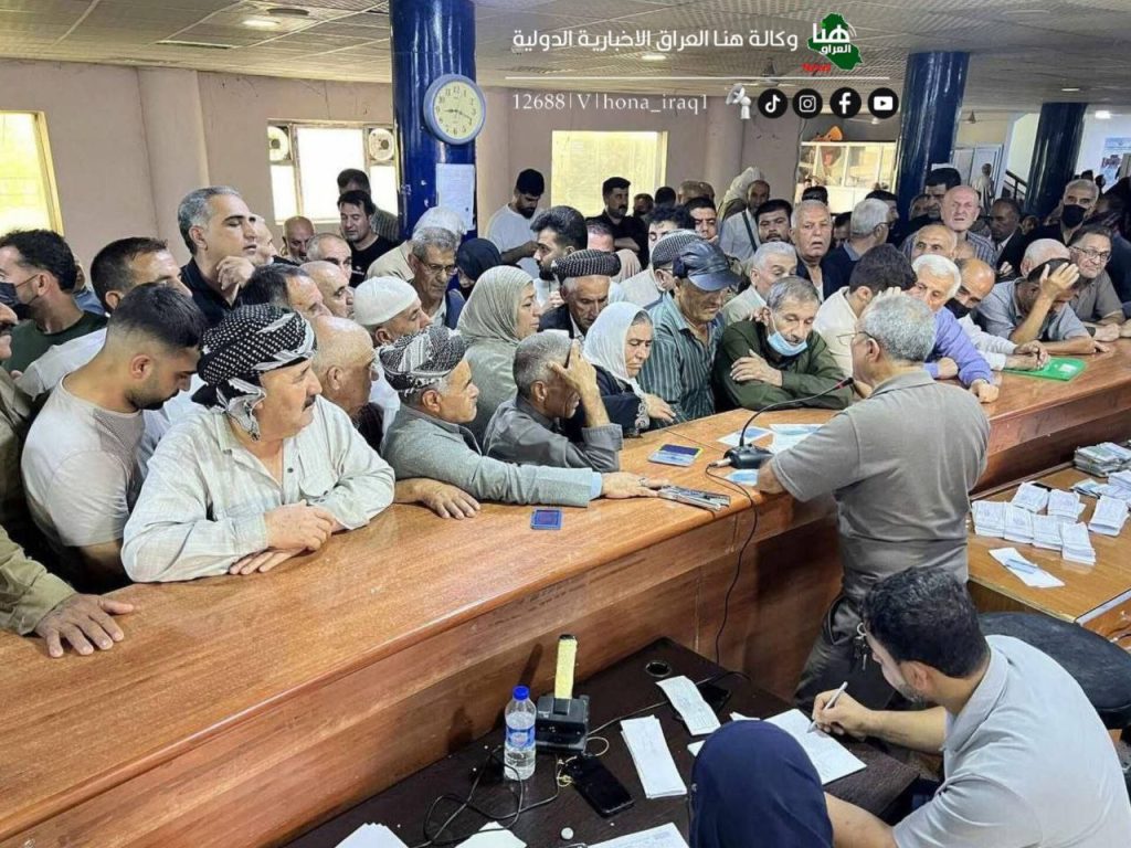 مواطنون كرد اثناء تسليمهم رواتبهم في إقليم كردستان