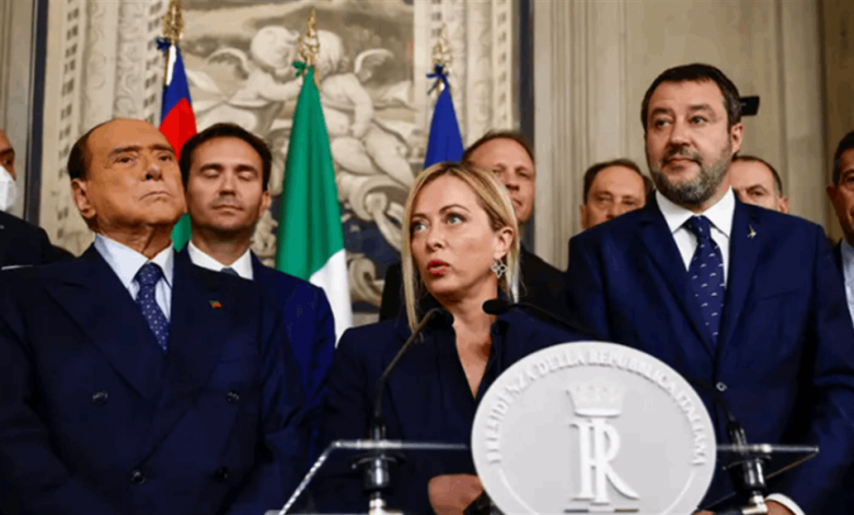 وانتصرت ميلوني، زعيمة حزب “إخوة إيطاليا”، في انتخابات الشهر الماضي بالتحالف مع حزب “فورزا إيطاليا” بزعامة سيلفيو برلسكوني وحزب “الرابطة” بزعامة ماتيو سالفيني.