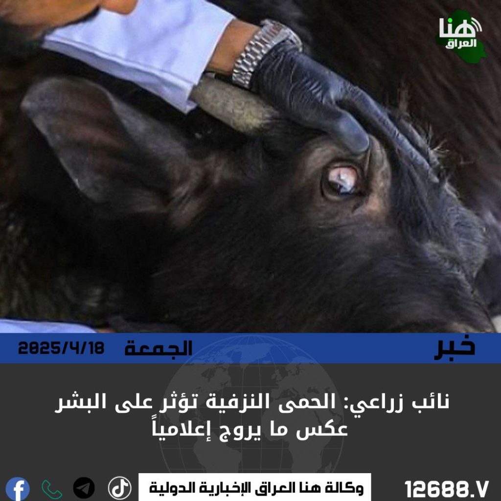 أكد عضو لجنة الزراعة النيابية ثائر الجبوري، أن الحمى النزفية تؤثر بشكل مباشر على الإنسان، خلافاً لما يُشاع في بعض وسائل الإعلام، داعياً إلى التعامل مع المرض بمهنية وتوعية صحيحة بعيداً عن التهويل أو التعتيم.
