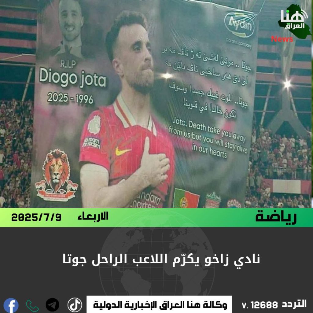 رفع نادي زاخو لافتة كبيرة كُتب عليها: “جوتا. الموت غيّبك جسدًا وسوف تكون خالدًا في قلوبنا”، تكريمًا لروح اللاعب الراحل.