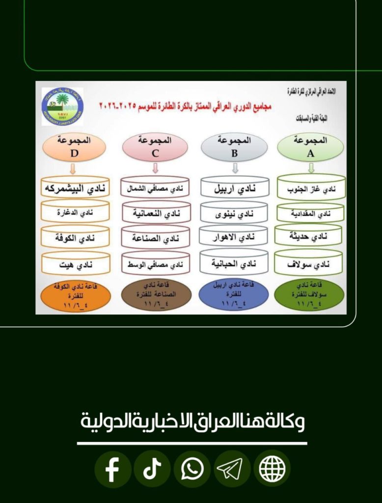 الرئيسية/رياضة/نتائج قرعة الدوري العراقي الممتاز لكرة الطائرة للموسم 2025-2026 رياضة نتائج قرعة الدوري العراقي الممتاز لكرة الطائرة للموسم 2025-2026 شاركها فيسبوك X لينكدإن Tumblr بينتيريست Reddit VKontakte Odnoklassniki Pocket مشاركة عبر البريد طباعة