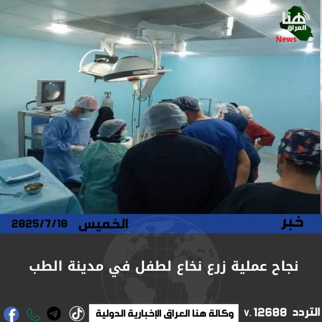 أعلن فريق طبي في مدينة الطب ببغداد عن نجاح عملية زرع نخاع العظم لطفل يبلغ من العمر 10 سنوات.