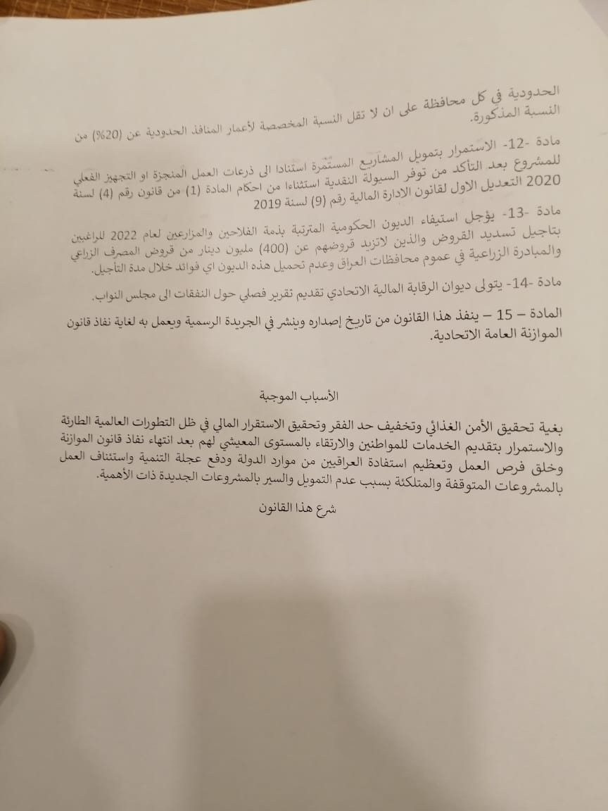 نص مقترح قانون الأمن الغذائي المعد الى القراءة الثانية