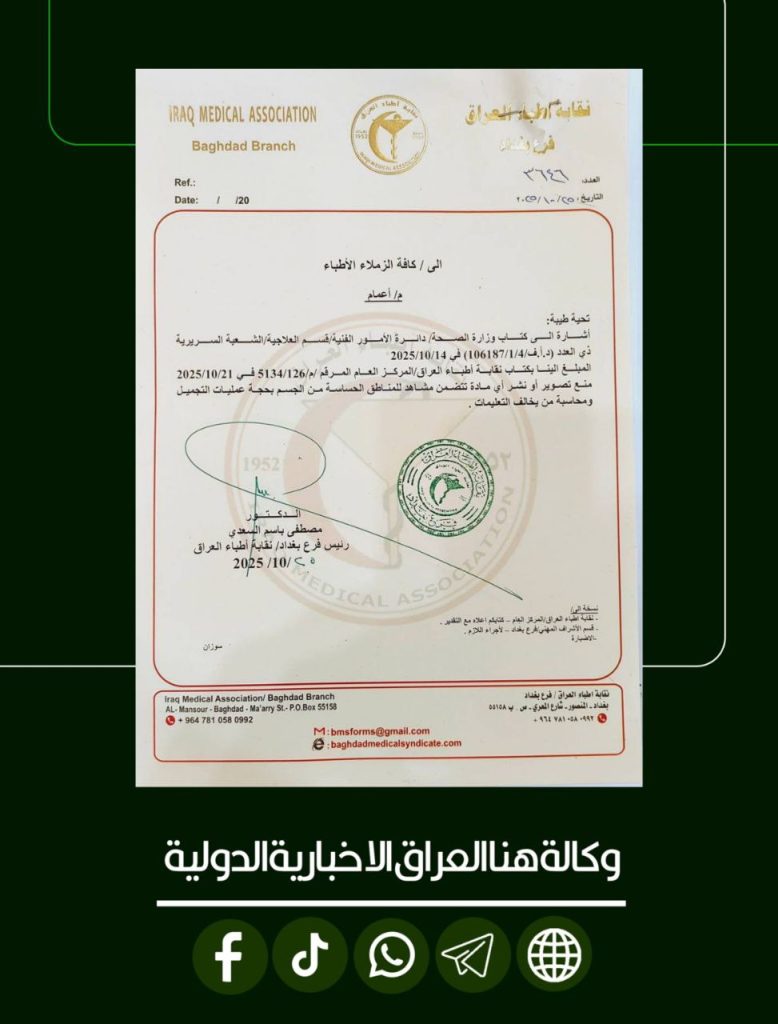 الرئيسية/صحة/نقابة الأطباء : منع تصوير أو نشر أي مادة تتضمن مشاهد للمناطق الحساسة من الجسم بحجة عمليات التجميل صحةمحلي نقابة الأطباء : منع تصوير أو نشر أي مادة تتضمن مشاهد للمناطق الحساسة من الجسم بحجة عمليات التجميل شاركها فيسبوك X لينكدإن Tumblr بينتيريست Reddit VKontakte Odnoklassniki Pocket مشاركة عبر البريد طباعة