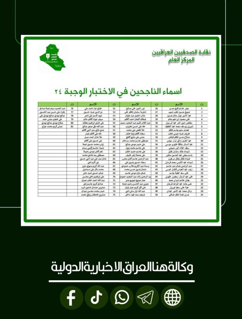الرئيسية/محلي/نقابة الصحفيين العراقيين تعلن نتائج اختبارات الكفاءة المهنية لمحافظة بغداد (الوجبة 24) وتحدد إجراءات قبول العضوية محلي نقابة الصحفيين العراقيين تعلن نتائج اختبارات الكفاءة المهنية لمحافظة بغداد (الوجبة 24) وتحدد إجراءات قبول العضوية شاركها فيسبوك X لينكدإن Tumblr بينتيريست Reddit VKontakte Odnoklassniki Pocket مشاركة عبر البريد طباعة