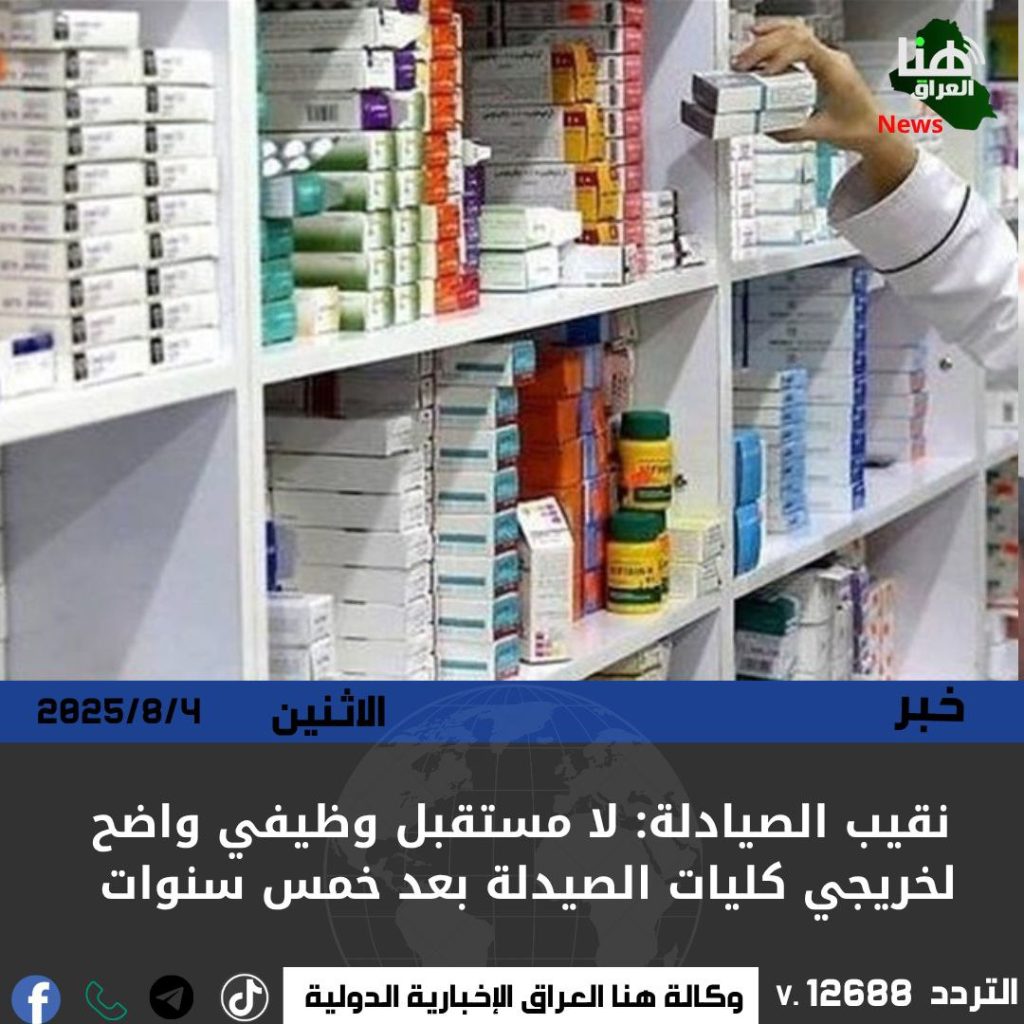 وجه نقيب الصيادلة في العراق، حيدر الصائغ، نصيحة لطلبة السادس الإعدادي الفرع العلمي بعدم التسرع بالتقديم على كليات الصيدلة، محذراً من صعوبة الحصول على وظائف حكومية لاحقاً، وشبه انعدام الفرص في القطاع الخاص خلال السنوات القادمة.