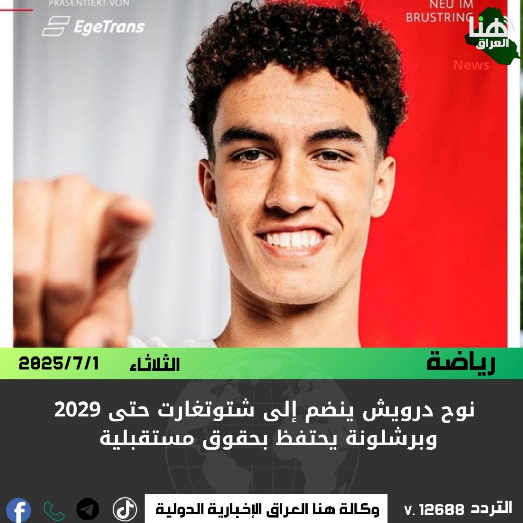 أعلن نادي شتوتغارت الألماني تعاقده مع اللاعب الشاب نوح درويش بعقد يمتد حتى عام 2029، في صفقة احتفظ خلالها نادي برشلونة بنسبة من قيمة البيع المستقبلي، إلى جانب حق أولوية إعادة الشراء.