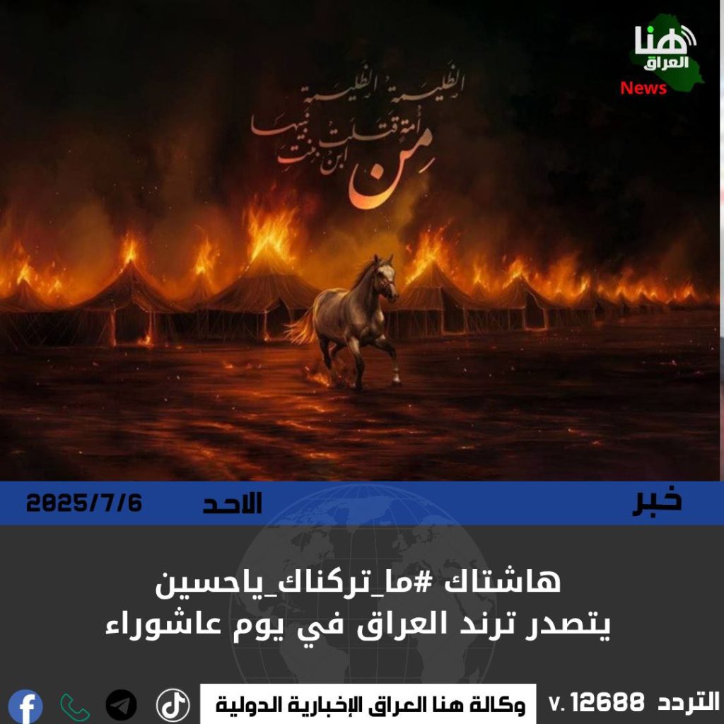 تصدّر وسم #ماتركناكياحسين قائمة الترند في العراق على منصة “إكس” (تويتر سابقاً)، بعد أن تجاوز عدد التغريدات المرتبطة به أكثر من 6 آلاف تغريدة خلال ساعات قليلة.