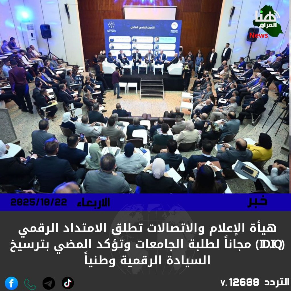 أعلن رئيس هيأة الإعلام والاتصالات الدكتور نوفل أبورغيف، عن إطلاق الامتداد الرقمي الجديد (ID.IQ) مجاناً لطلبة الجامعات العراقية، مؤكداً أن التحول الرقمي أصبح مشروعاً وطنياً متكاملاً لترسيخ السيادة الرقمية وتعزيز الاقتصاد المعرفي في العراق.