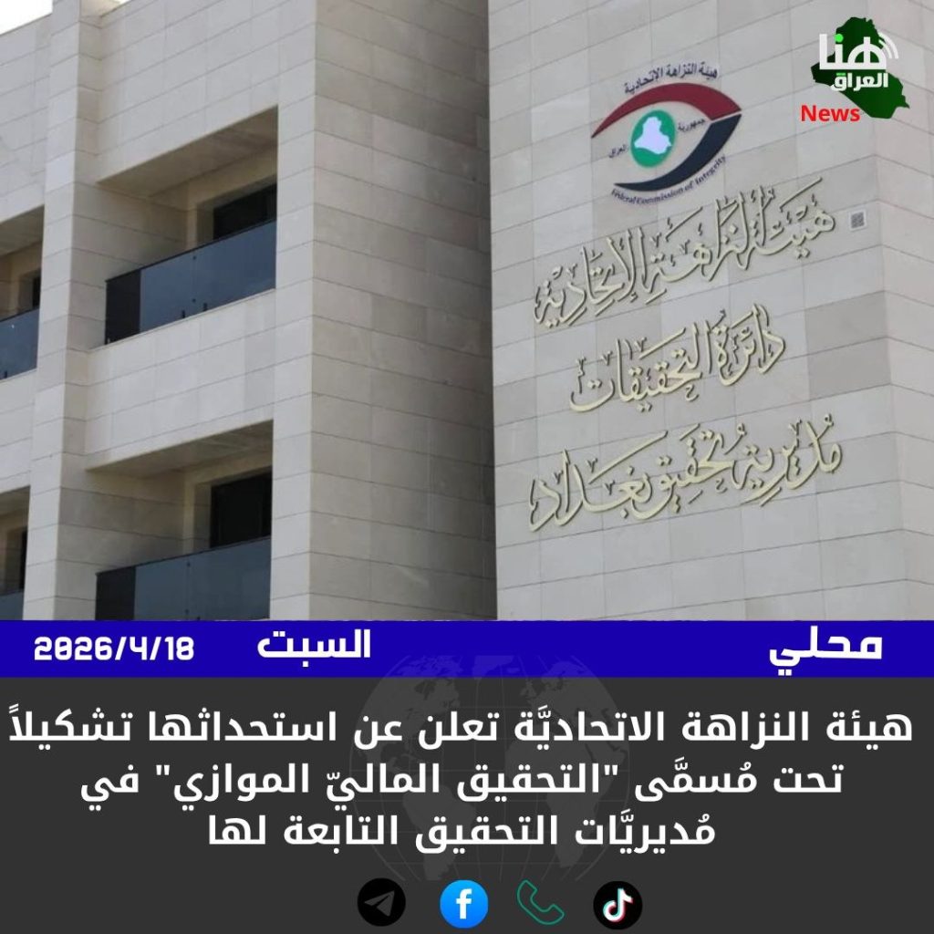 الرئيسية/امن/هيئة النزاهة الاتحاديَّة تعلن عن استحداثها تشكيلاً تحت مُسمَّى “التحقيق الماليّ الموازي” في مُديريَّات التحقيق التابعة لها امنمحلي هيئة النزاهة الاتحاديَّة تعلن عن استحداثها تشكيلاً تحت مُسمَّى “التحقيق الماليّ الموازي” في مُديريَّات التحقيق التابعة لها شاركها فيسبوك X لينكدإن Tumblr بينتيريست Reddit VKontakte Odnoklassniki Pocket مشاركة عبر البريد طباعة
