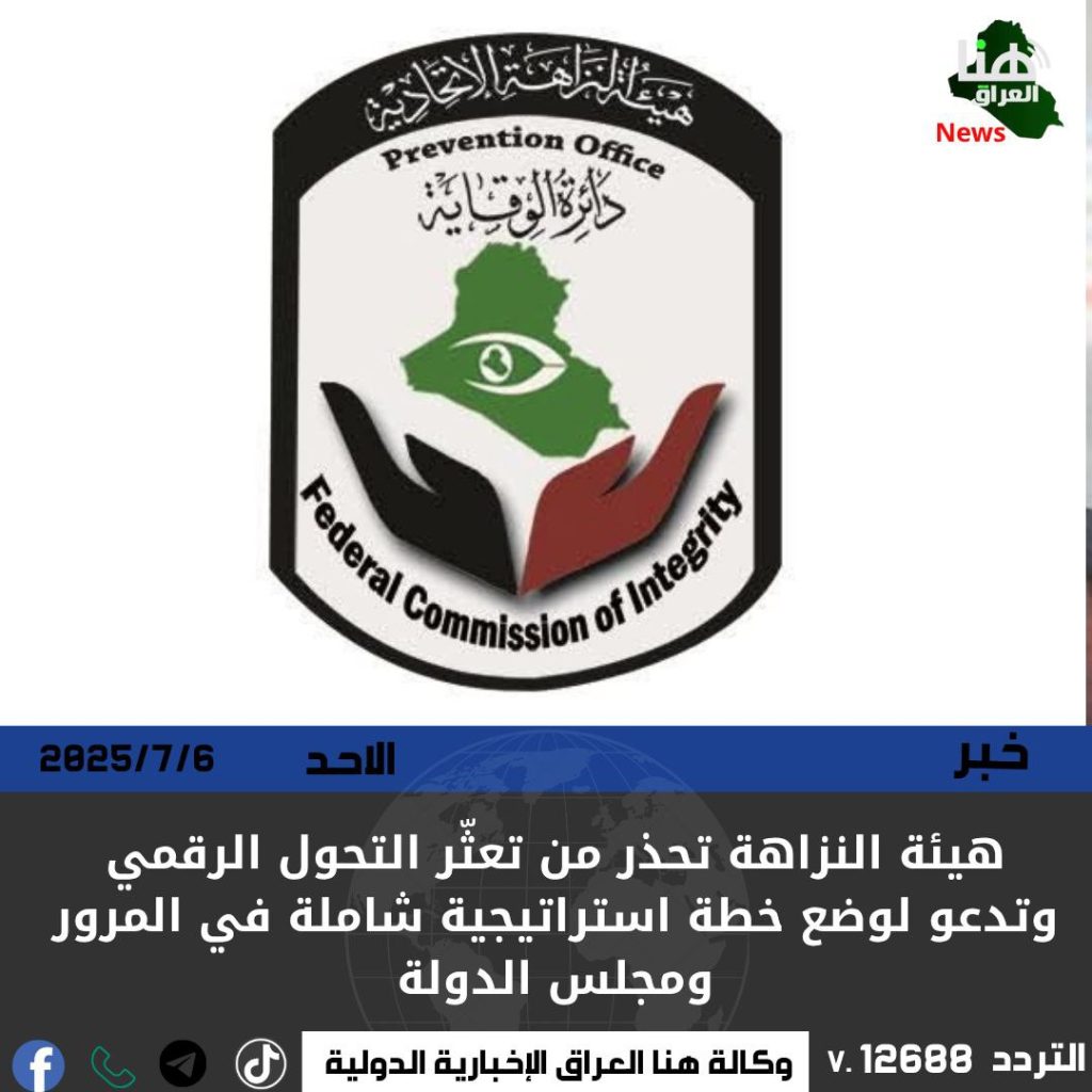 أصدرت هيئة النزاهة تقريرًا موجّهًا إلى الأمانة العامة لمجلس الوزراء ومجلس الدولة ووزارة الداخلية، دعت فيه إلى إعداد خطة استراتيجية واضحة ومحددة بتوقيتات زمنية لاستكمال المشاريع الإلكترونية المعطّلة في مديرية المرور العامة ومجلس الدولة، مؤكدة أن التحول الرقمي لا يزال جزئيًا ومحدودًا.