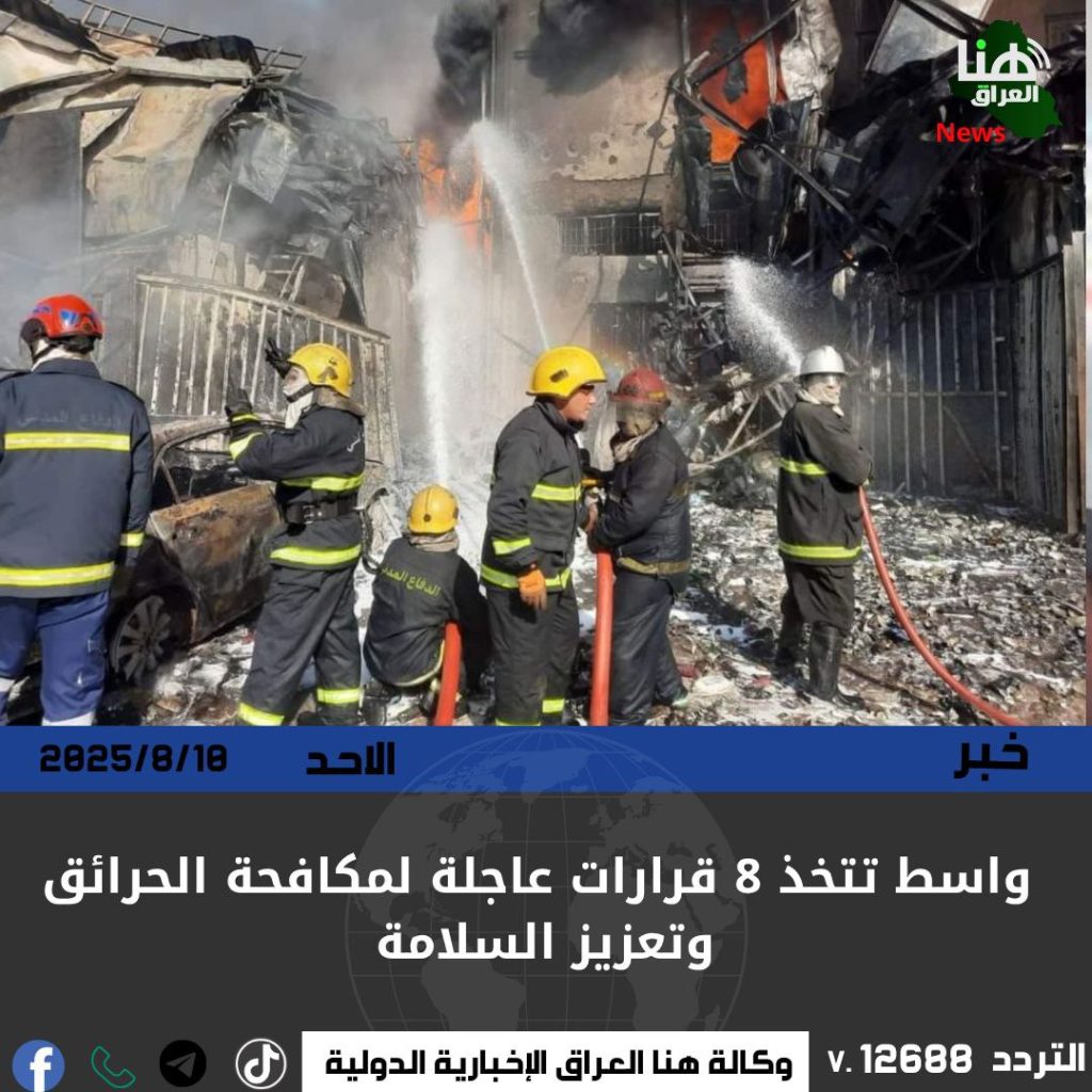 عقدت اللجنة العليا لإدارة أعمال الدفاع المدني في محافظة واسط، برئاسة المحافظ هادي الهماشي، اجتماعها الأول وأقرت ثمانية قرارات تهدف لتعزيز إجراءات السلامة والحد من مخاطر الحرائق.