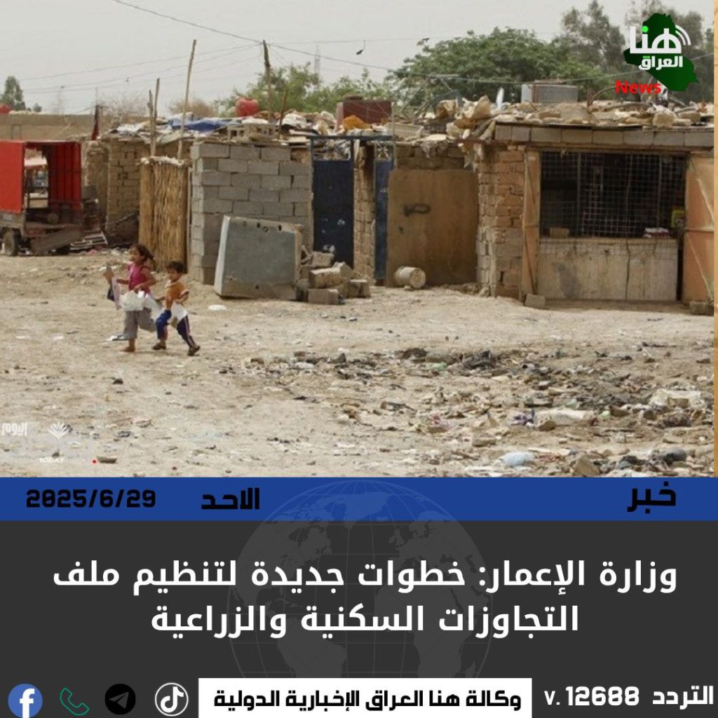 أعلنت وزارة الإعمار والإسكان الشروع بتنفيذ قرار 77 لسنة 2025 لتنظيم التجاوزات على الأراضي، عبر لجان ميدانية تشخص طبيعة العشوائيات وتحدد أهليتها للخدمات وفق معايير فنية وعمرانية، مع التنسيق المستمر مع المحافظات لتحديث التصاميم الأساسية.
