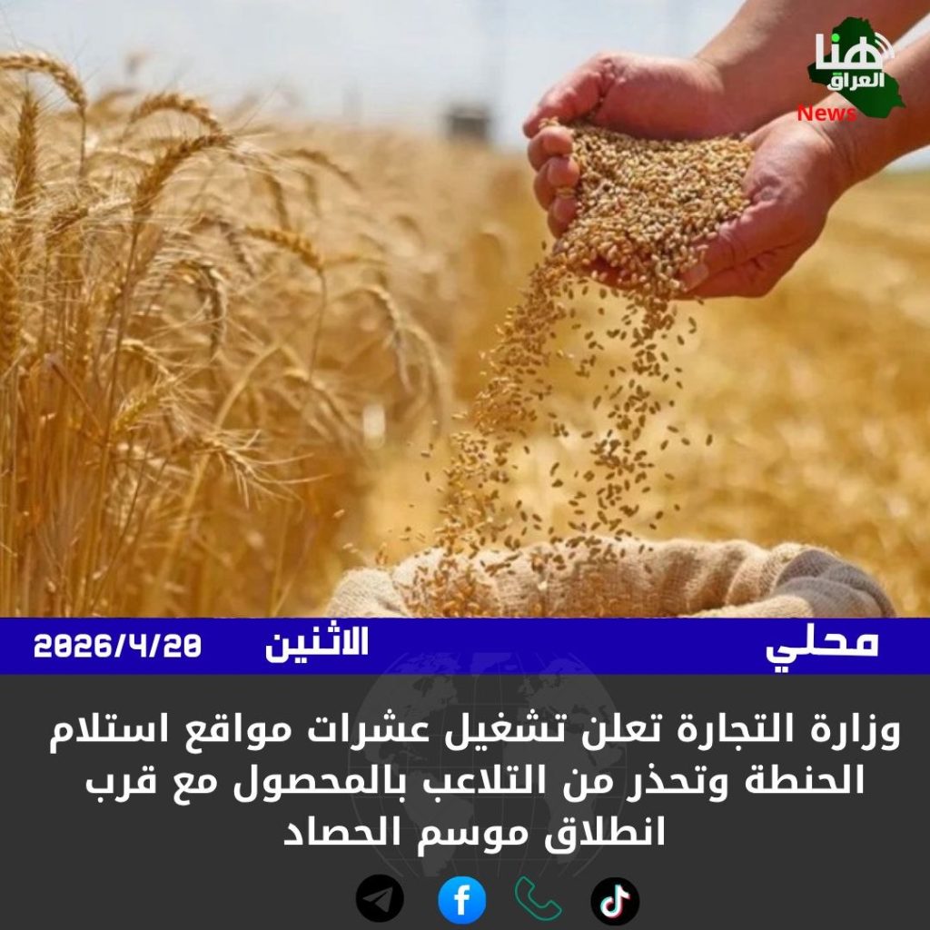 أعلنت وزارة التجارة العراقية عن تشغيل 78 موقعاً لتسلم محصول الحنطة للموسم الحالي، ضمن خطة تهدف إلى استيعاب الإنتاج الزراعي في مختلف المحافظات.