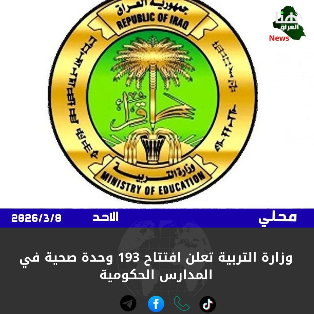 أعلنت وزارة التربية العراقية، اليوم الأحد، افتتاح 193 وحدة صحية في المدارس الحكومية بمختلف محافظات البلاد.