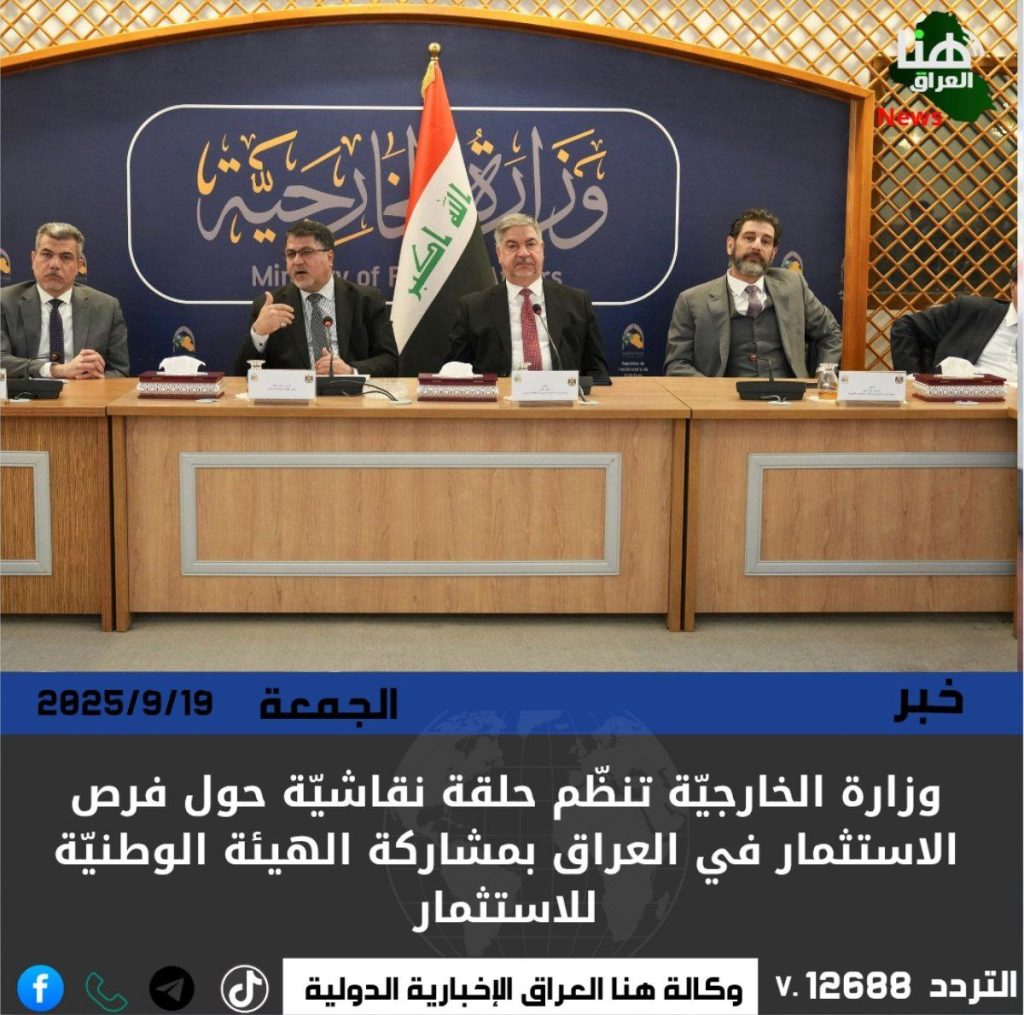 نظّمت وزارة الخارجيّة حلقةً نقاشيّةً بعنوان “دور الدبلوماسيّة الاقتصاديّة في جذب الاستثمارات الخارجيّة وبناء الشراكات مع العراق”، بالتعاون مع الهيئة الوطنيّة للاستثمار، وبمشاركة سفراء وممثّلي عدد من دول منظّمة التعاون الاقتصادي والتنمية (OECD).