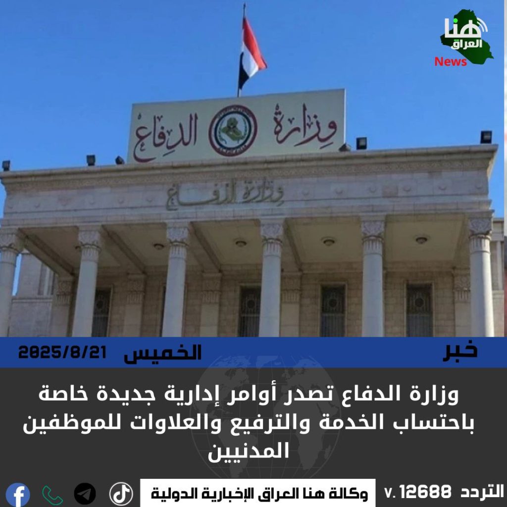 الرئيسية/امن/وزارة الدفاع تصدر أوامر إدارية جديدة خاصة باحتساب الخدمة والترفيع والعلاوات للموظفين المدنيين امنمحلي وزارة الدفاع تصدر أوامر إدارية جديدة خاصة باحتساب الخدمة والترفيع والعلاوات للموظفين المدنيين شاركها فيسبوك X لينكدإن Tumblr بينتيريست Reddit VKontakte Odnoklassniki Pocket مشاركة عبر البريد طباعة