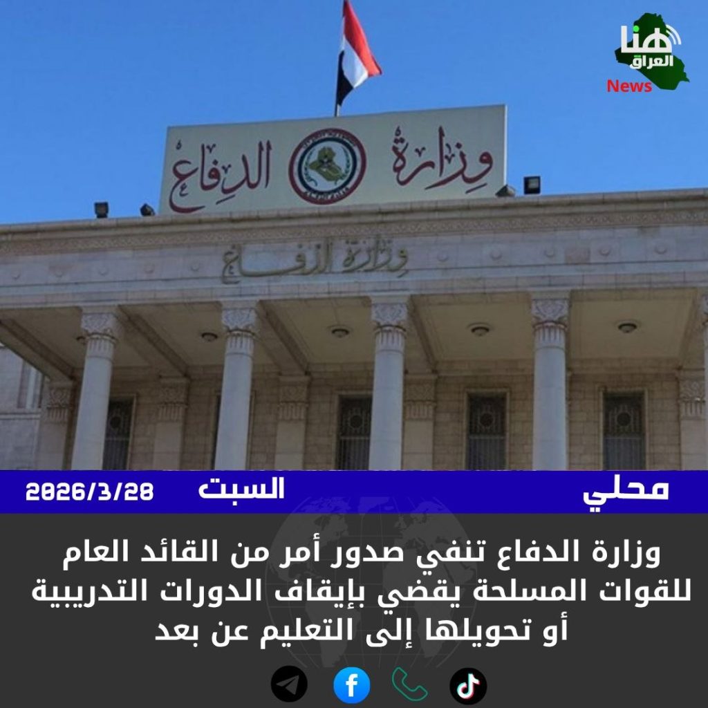 الرئيسية/امن/وزارة الدفاع تنفي صدور أمر من القائد العام للقوات المسلحة يقضي بإيقاف الدورات التدريبية أو تحويلها إلى التعليم عن بعد امنمحلي وزارة الدفاع تنفي صدور أمر من القائد العام للقوات المسلحة يقضي بإيقاف الدورات التدريبية أو تحويلها إلى التعليم عن بعد شاركها فيسبوك X لينكدإن Tumblr بينتيريست Reddit VKontakte Odnoklassniki Pocket مشاركة عبر البريد طباعة