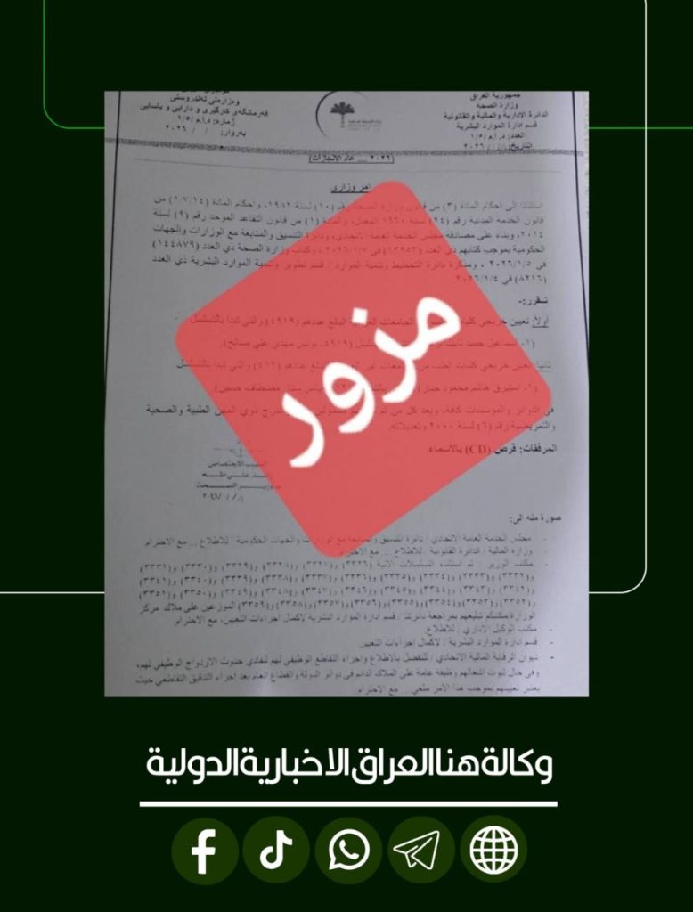 وزارة الصحة تنفي كتاباً مزوراً يخص تعيينات خريجي كليات الطب