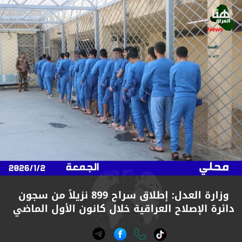 وزارة العدل: إطلاق سراح 899 نزيلاً من سجون دائرة الإصلاح العراقية خلال كانون الأول الماضي