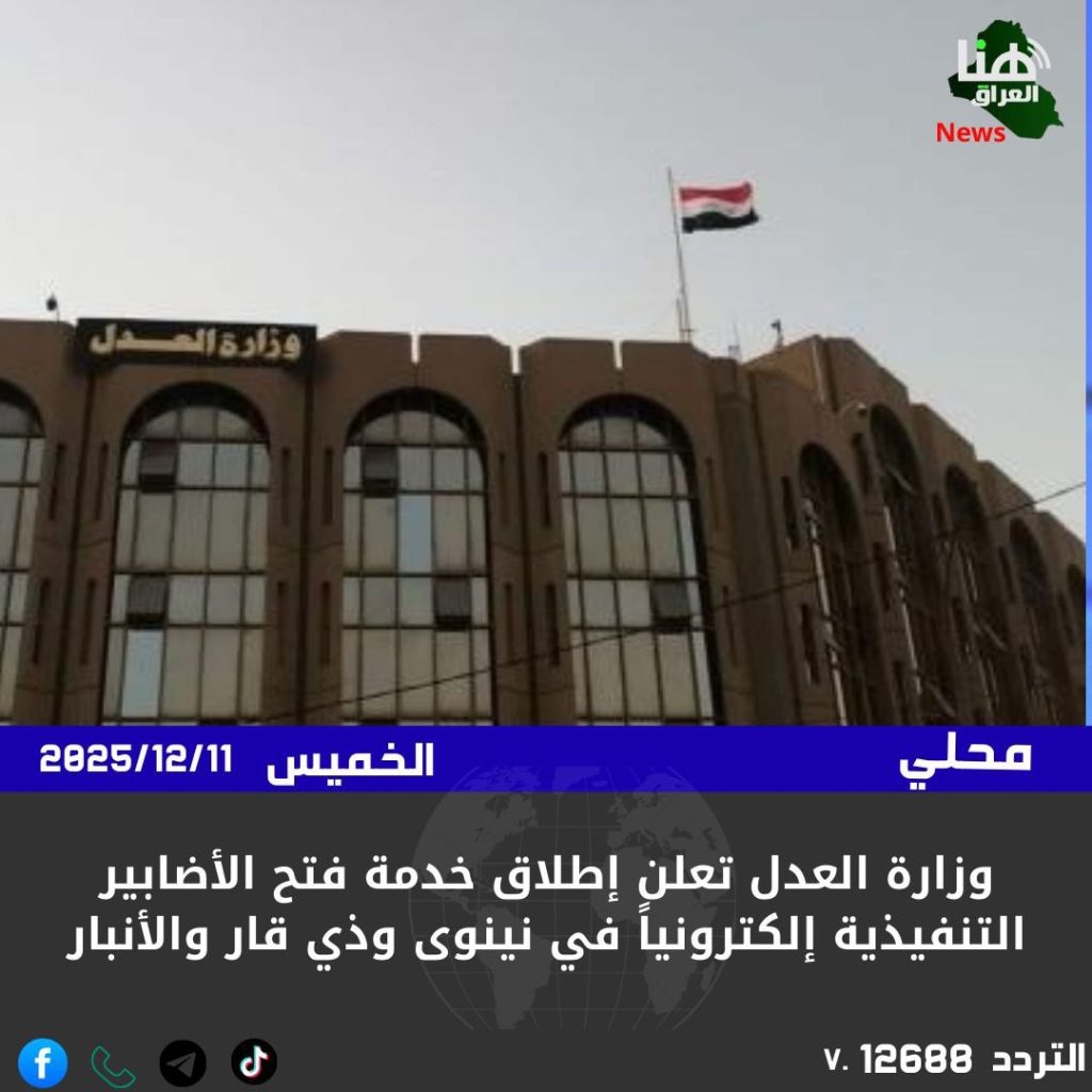 الرئيسية/محلي/وزارة العدل تعلن إطلاق خدمة فتح الأضابير التنفيذية إلكترونياً في نينوى وذي قار والأنبار محلي وزارة العدل تعلن إطلاق خدمة فتح الأضابير التنفيذية إلكترونياً في نينوى وذي قار والأنبار شاركها فيسبوك X لينكدإن Tumblr بينتيريست Reddit VKontakte Odnoklassniki Pocket مشاركة عبر البريد طباعة