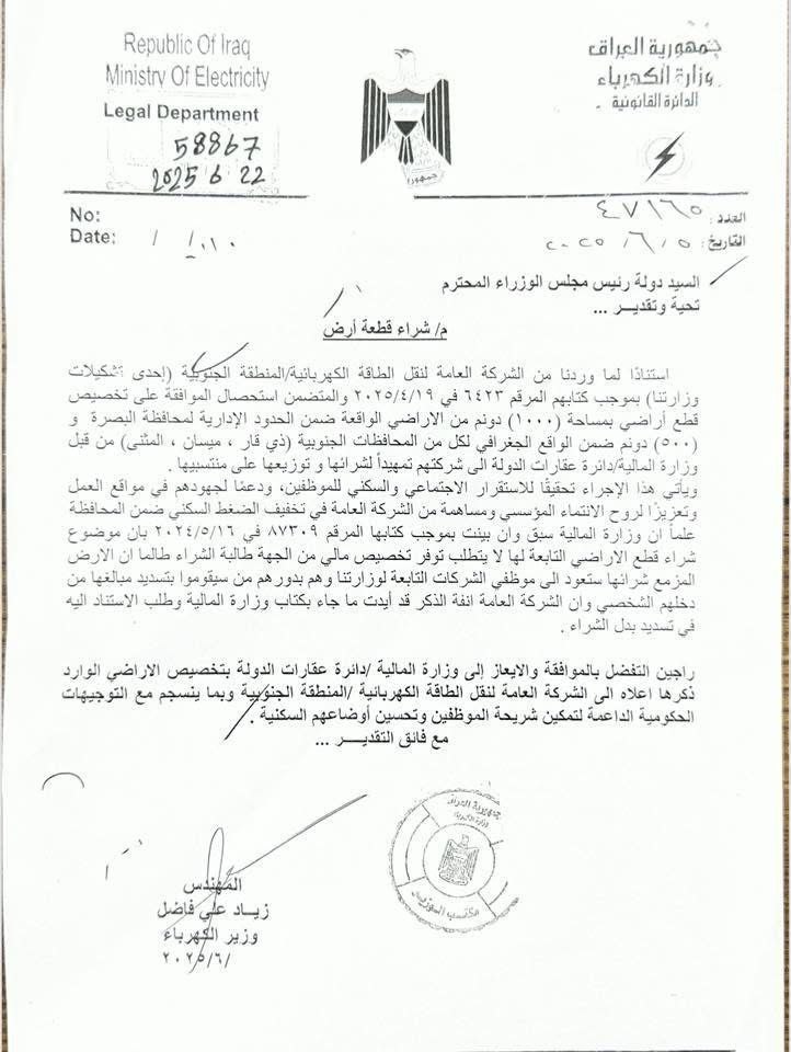 الرئيسية/محلي/وزارة الكهرباء: استحصلنا موافقة رئيس الوزراء على تخصيص 1000 دونم من الاراضي في محافظة البصرة و500 دونم ضمن في محافظات (ذي قار وميسان والمثنى) لدعم إسكان موظفي الكهرباء في الجنوب محلي وزارة الكهرباء: استحصلنا موافقة رئيس الوزراء على تخصيص 1000 دونم من الاراضي في محافظة البصرة و500 دونم ضمن في محافظات (ذي قار وميسان والمثنى) لدعم إسكان موظفي الكهرباء في الجنوب شاركها فيسبوك X لينكدإن Tumblr بينتيريست Reddit VKontakte Odnoklassniki Pocket مشاركة عبر البريد طباعة
