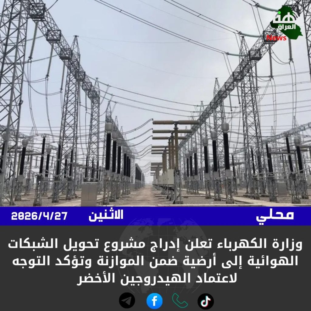 أعلنت وزارة الكهرباء، اليوم الاثنين، إدراج مشروع تحويل الشبكات الهوائية إلى أرضية ضمن موازنة العام الحالي، في إطار خططها لتقليل الضياعات ومعالجة التجاوزات وتعزيز كفاءة الاستهلاك.