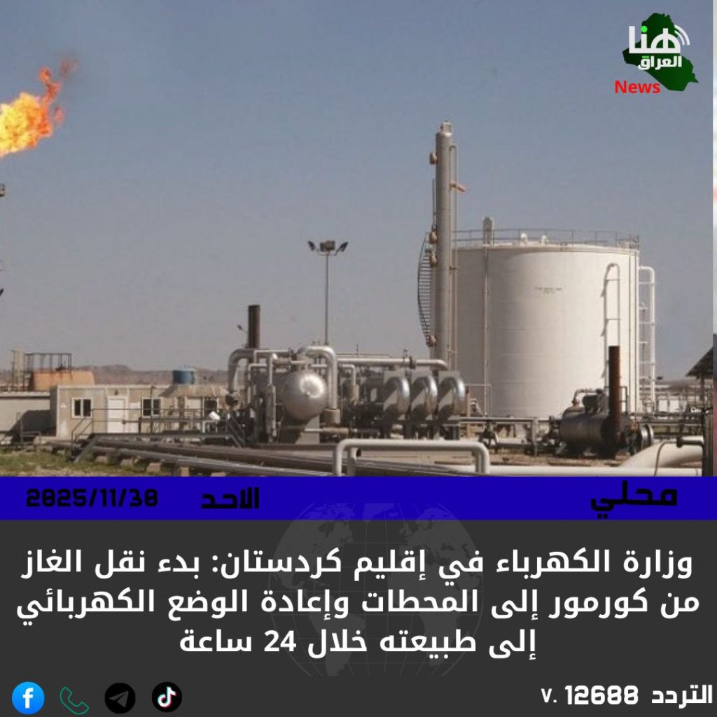 الرئيسية/محلي/وزارة الكهرباء في إقليم كردستان: بدء نقل الغاز من كورمور إلى المحطات وإعادة الوضع الكهربائي إلى طبيعته خلال 24 ساعة محلي وزارة الكهرباء في إقليم كردستان: بدء نقل الغاز من كورمور إلى المحطات وإعادة الوضع الكهربائي إلى طبيعته خلال 24 ساعة شاركها فيسبوك X لينكدإن Tumblr بينتيريست Reddit VKontakte Odnoklassniki Pocket مشاركة عبر البريد طباعة