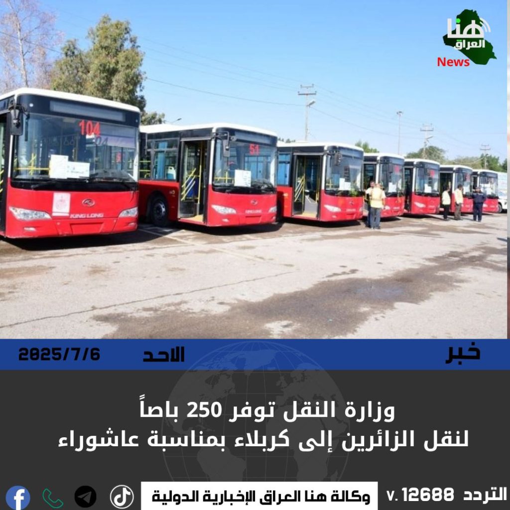وزارة النقل توفر 250 باصاً لنقل الزائرين إلى كربلاء بمناسبة عاشوراء