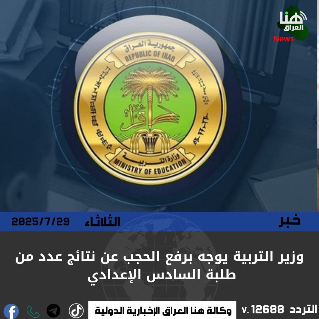 وجّه وزير التربية برفع الحجب عن نتائج بعض طلبة السادس الإعدادي للعام الدراسي 2024–2025، بعد متابعة دقيقة لحالاتهم من قبل لجان مختصة.
