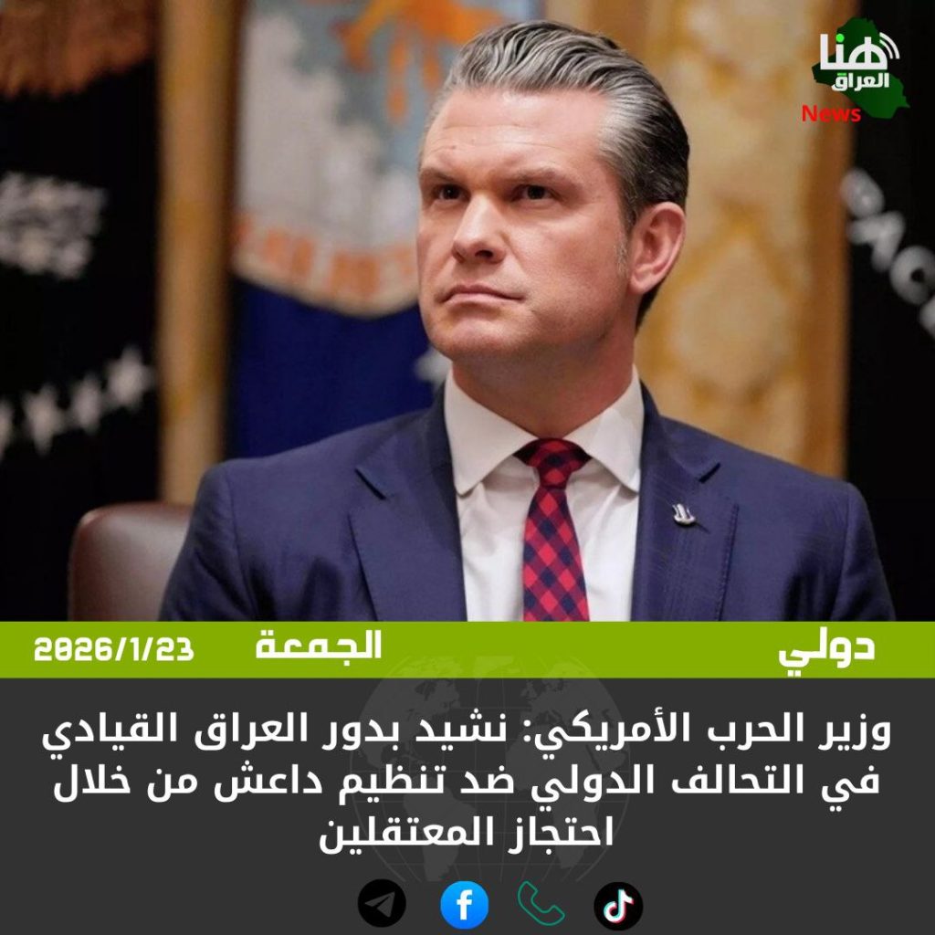 وزير الحرب الأمريكي: نشيد بدور العراق القيادي في التحالف الدولي ضد تنظيم داعش من خلال احتجاز المعتقلين