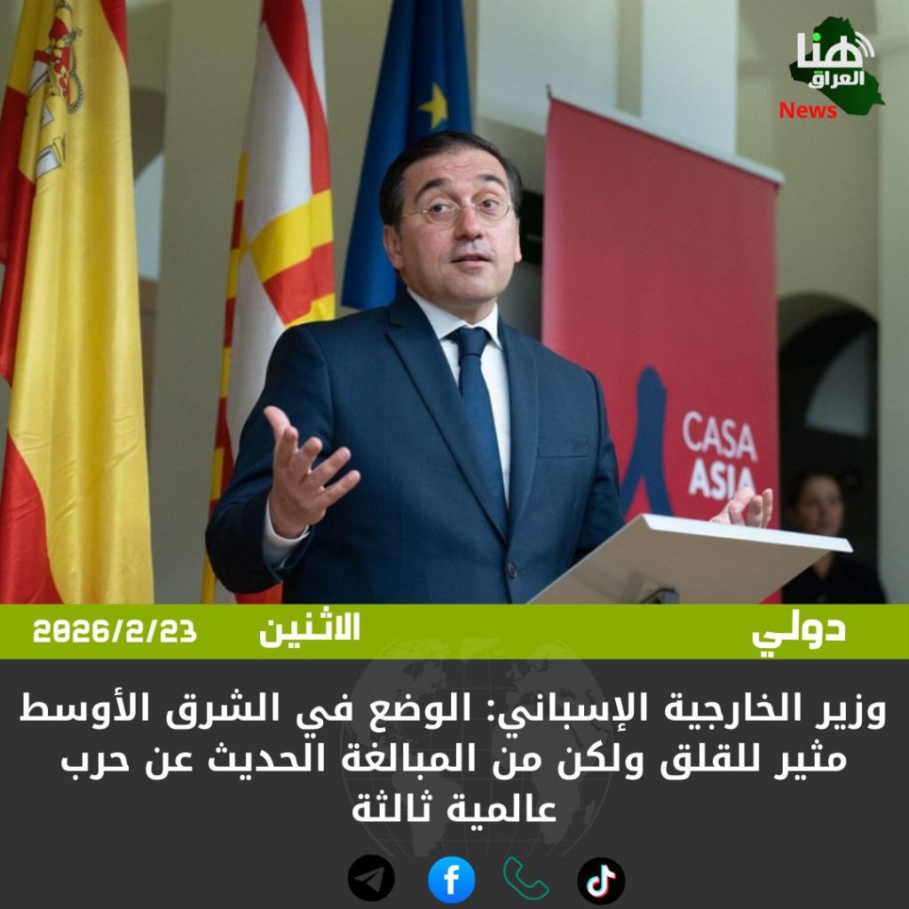 الرئيسية/دولي/وزير الخارجية الإسباني: الوضع في الشرق الأوسط مثير للقلق ولكن من المبالغة الحديث عن حرب عالمية ثالثة دولي وزير الخارجية الإسباني: الوضع في الشرق الأوسط مثير للقلق ولكن من المبالغة الحديث عن حرب عالمية ثالثة شاركها فيسبوك X لينكدإن Tumblr بينتيريست Reddit VKontakte Odnoklassniki Pocket مشاركة عبر البريد طباعة