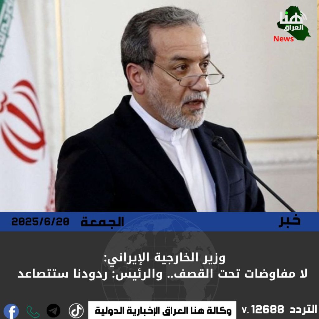 صرّح وزير الخارجية الإيراني أن بلاده غير مستعدة للدخول في أي مفاوضات ما دامت الهجمات الصهيونية مستمرة.