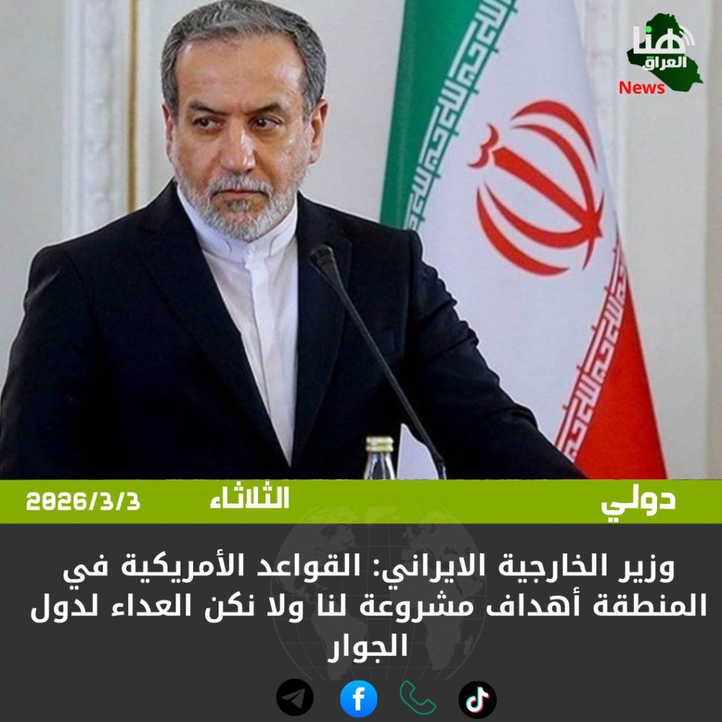 الرئيسية/دولي/وزير الخارجية الايراني: القواعد الأمريكية في المنطقة أهداف مشروعة لنا ولا نكن العداء لدول الجوار دولي وزير الخارجية الايراني: القواعد الأمريكية في المنطقة أهداف مشروعة لنا ولا نكن العداء لدول الجوار شاركها فيسبوك X لينكدإن Tumblr بينتيريست Reddit VKontakte Odnoklassniki Pocket مشاركة عبر البريد طباعة
