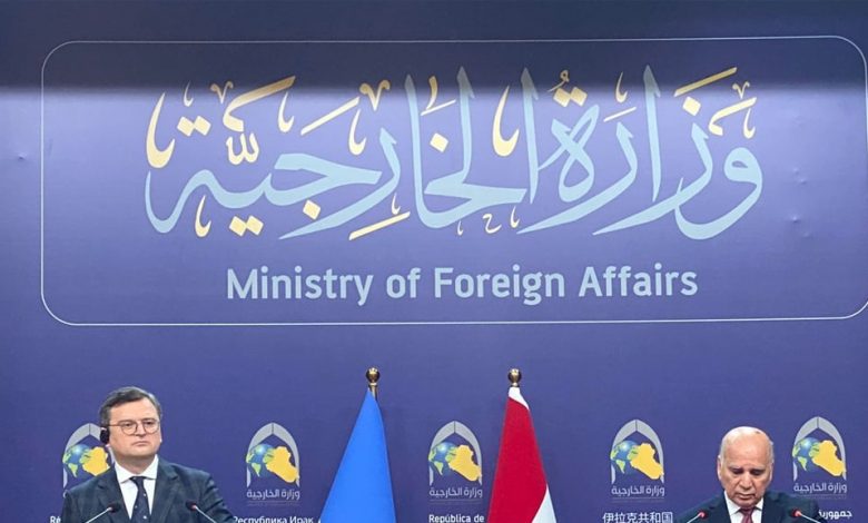 وقال حسين خلال مؤتمر صحفي مشترك مع نظيره الأوكراني ، إن “أوكرانيا دولة زراعية وصناعية مهمة ونؤكد على استمرار العلاقات معها”، مشيرا إلى أن “العراق مع وقف إطلاق النار بشأن الحرب الأوكرانية – الروسية”.