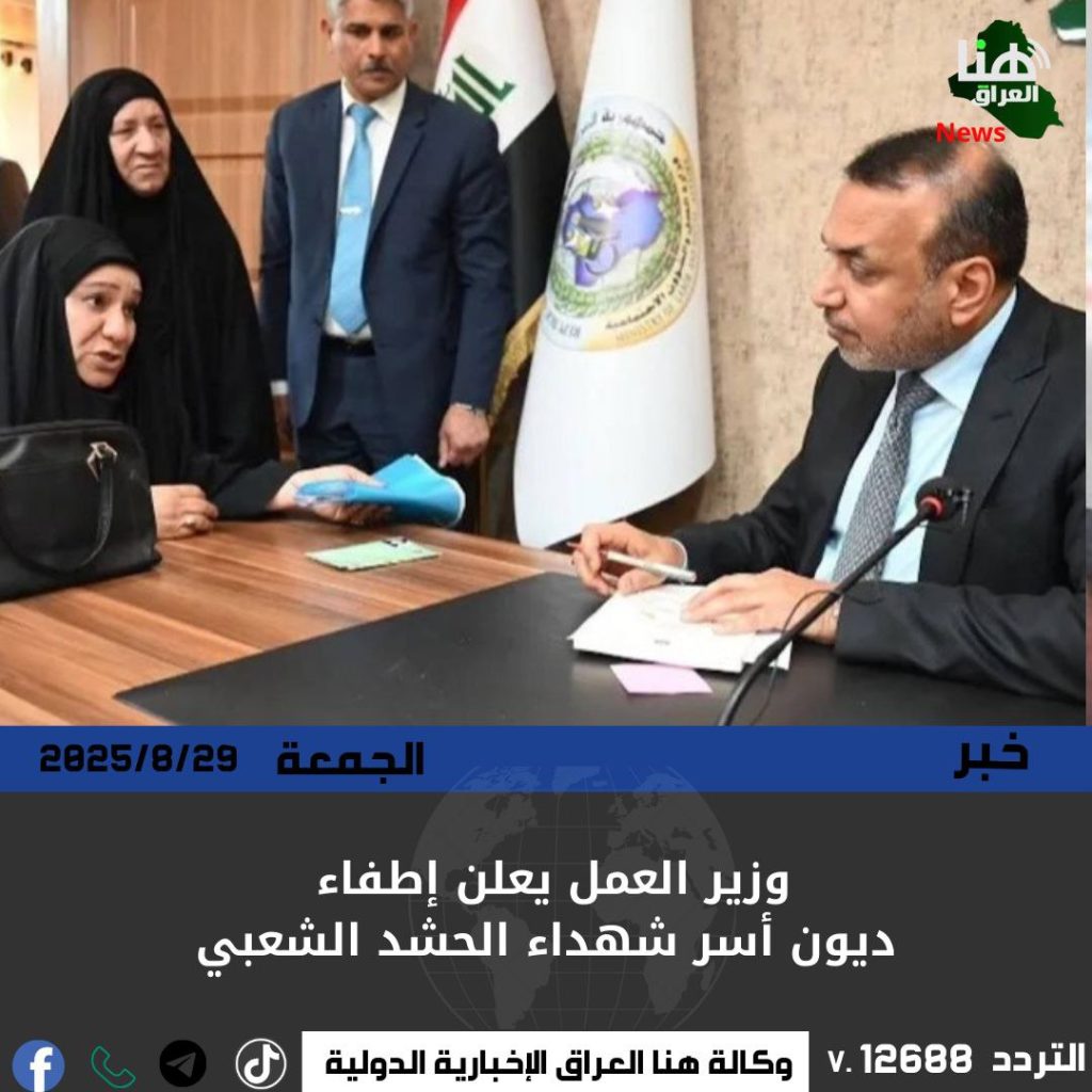 أعلن وزير العمل والشؤون الاجتماعية إطفاء الديون المترتبة على أسر شهداء الحشد الشعبي المشمولين بالإعانة الاجتماعية، مؤكداً أن القرار يأتي ضمن التزام الحكومة برعايتهم ورفع الأعباء المالية عنهم.