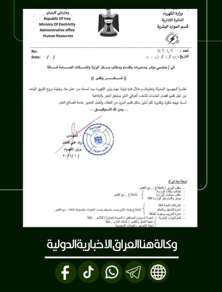 الرئيسية/محلي/وزير الكهرباء يوجه كتاب شكر لملاكات الوزارة ويشيد بجهودهم في دعم قطاع الطاقة محلي وزير الكهرباء يوجه كتاب شكر لملاكات الوزارة ويشيد بجهودهم في دعم قطاع الطاقة شاركها فيسبوك X لينكدإن Tumblr بينتيريست Reddit VKontakte Odnoklassniki Pocket مشاركة عبر البريد طباعة
