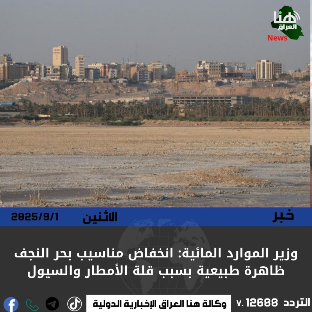 وزير الموارد المائية: انخفاض مناسيب بحر النجف ظاهرة طبيعية بسبب قلة الأمطار والسيول