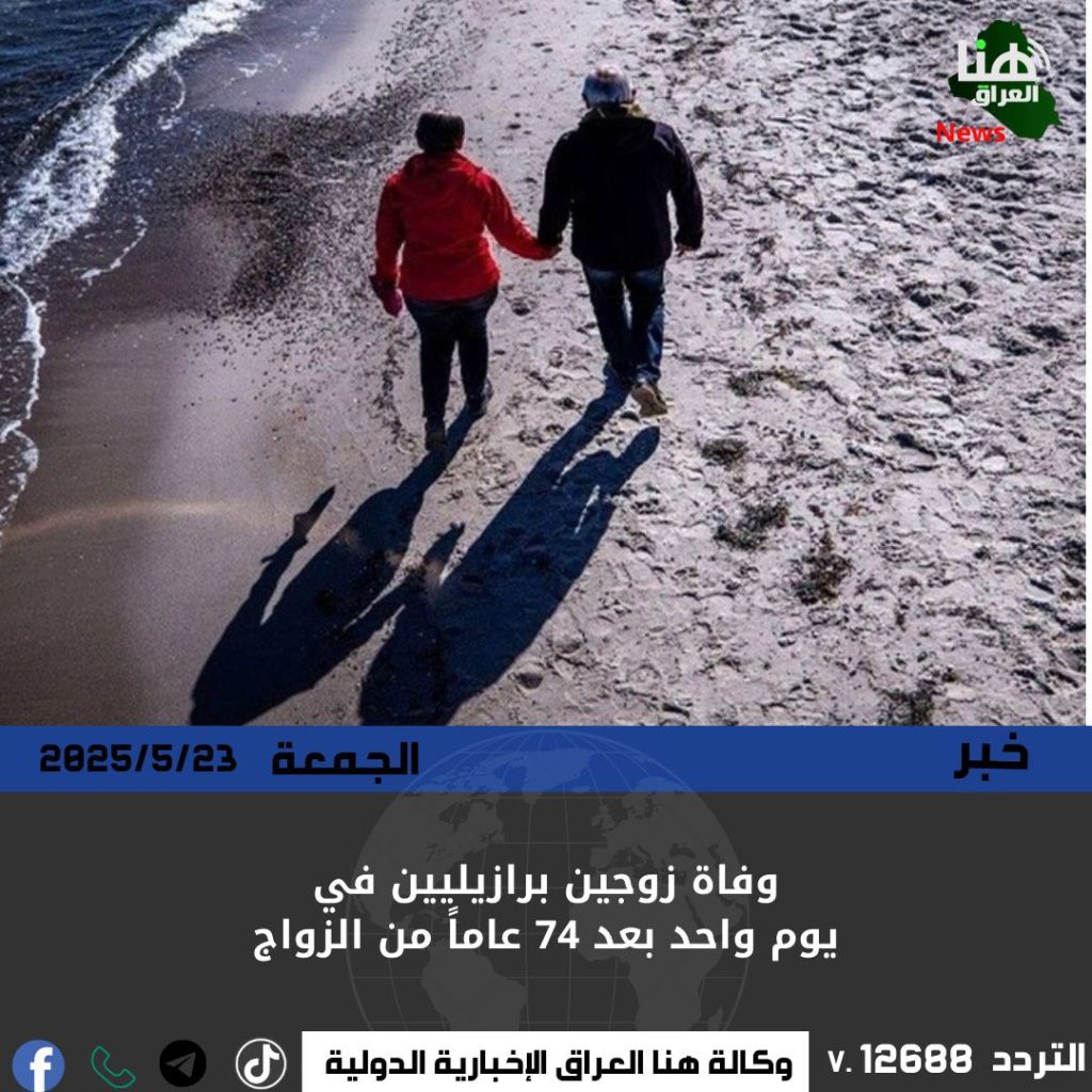 في قصة مؤثرة تعكس الوفاء والارتباط العاطفي العميق، توفي زوجان برازيليان في اليوم ذاته، وذلك بعد يومين فقط من احتفالهما بالذكرى الرابعة والسبعين لزواجهما، ما أثار موجة من التعاطف على منصات التواصل الاجتماعي.